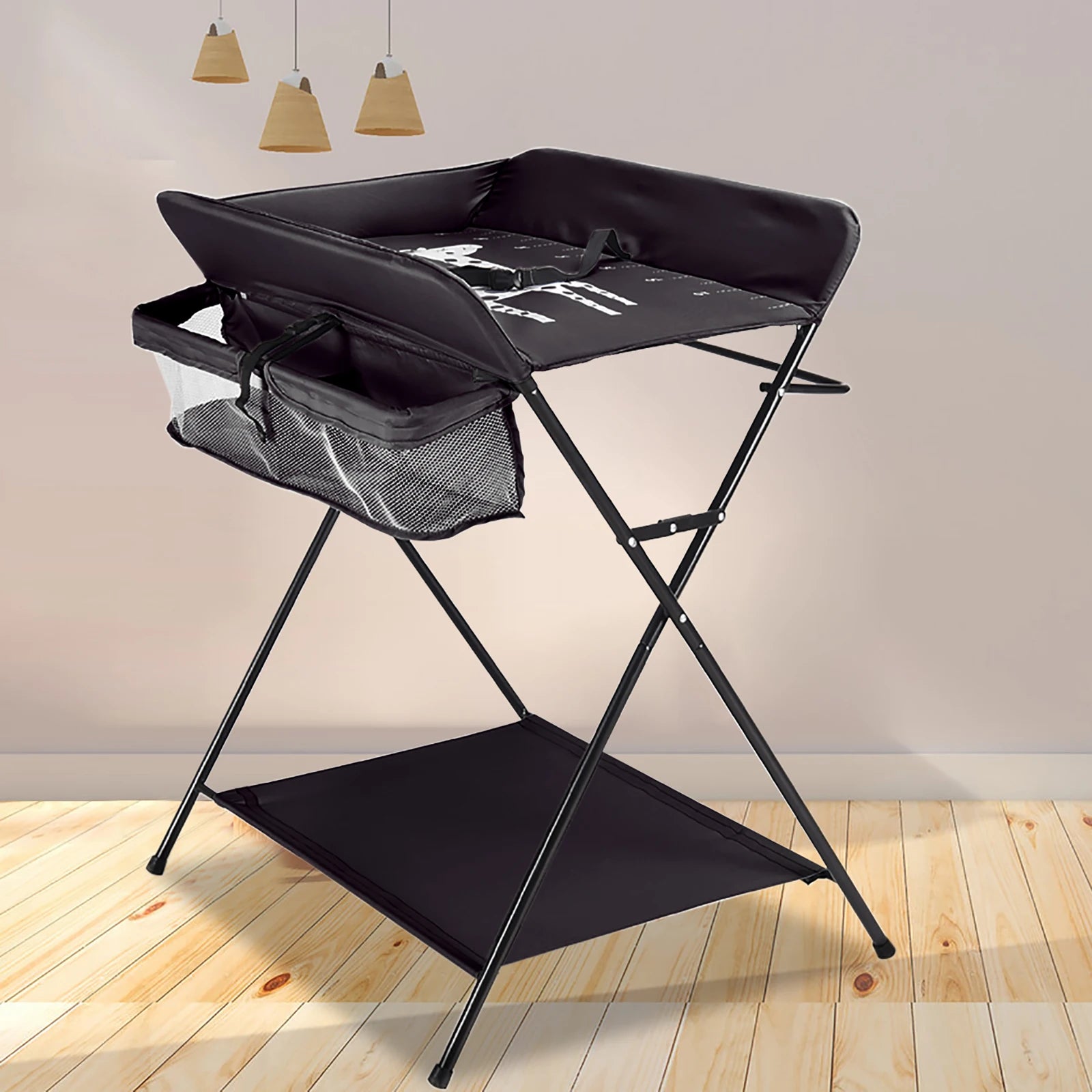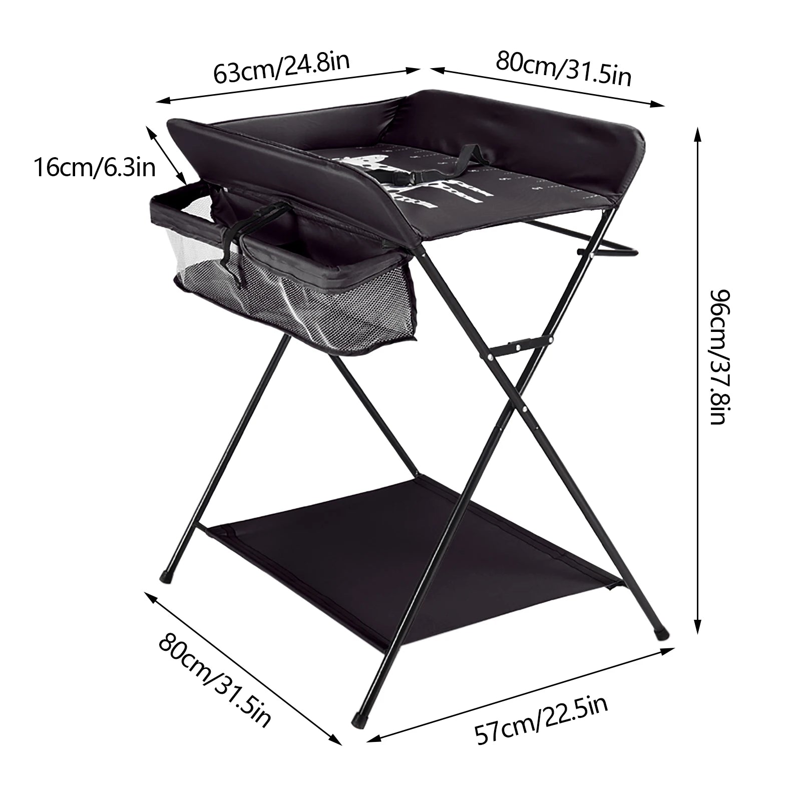Table à langer pliable avec étagères de rangement Coussin avec échelle de hauteur Grande table à langer 80 x 63 cm